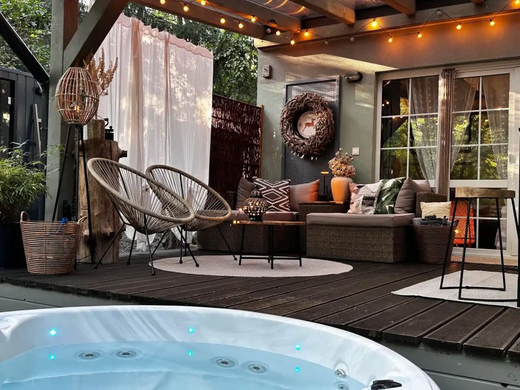 jacuzzizatok az erdőben, egy este, amikor a szauna
